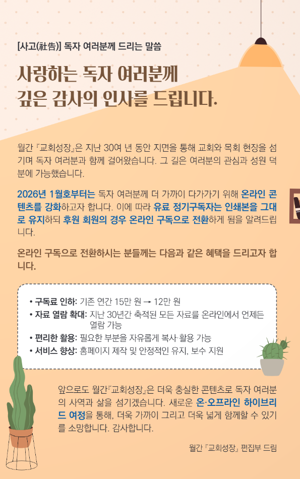 월간교회성장 회원을 위한 공간입니다